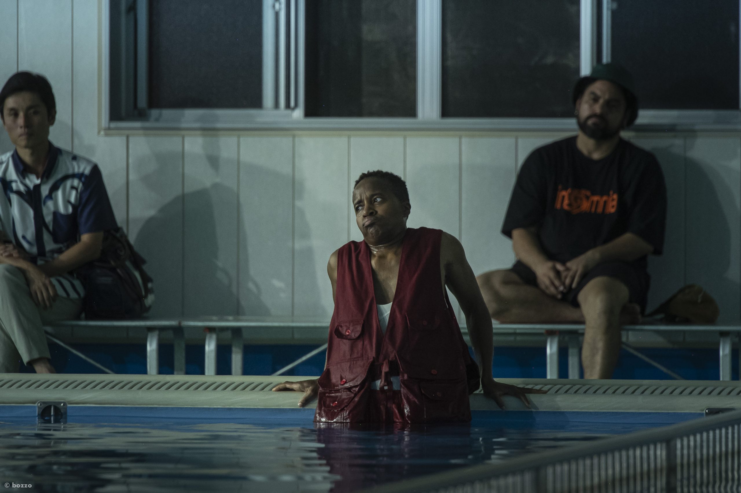 30分ほどの成果発表では、しかしデイナ・ミシェルはそれをやってのけたと私は感じた。起こったことはシンプルで、赤いライフジャケットを身につけたデイナ・ミシェルはプールサイドを歩き周り、水に足をつけたりシャワーを浴びたりした。時折脈絡なく、黒いキャップや靴下を使ったり、赤毛のウィッグを被ったりした。彼女がトークで語ったところによれば、赤毛のウィッグは人魚姫をヒントにしたトライなのだという。そして最後にはプールに全身で入り、短い距離を泳いだ。会場全体に音楽が流れていて私の席からはよく聞こえなかったのだけど、泳ぐ前、彼女は確かに何かを叫んでいた。