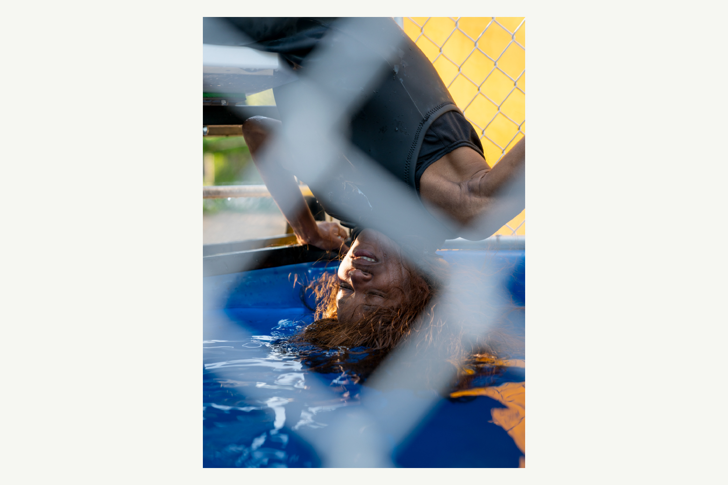 In her new work “IN WATER I MUST”, she explores how to “exist” in water—a space where she feels she cannot trust herself—by developing a choreographic vocabulary. Through this process, she seeks ways of living with less fear.